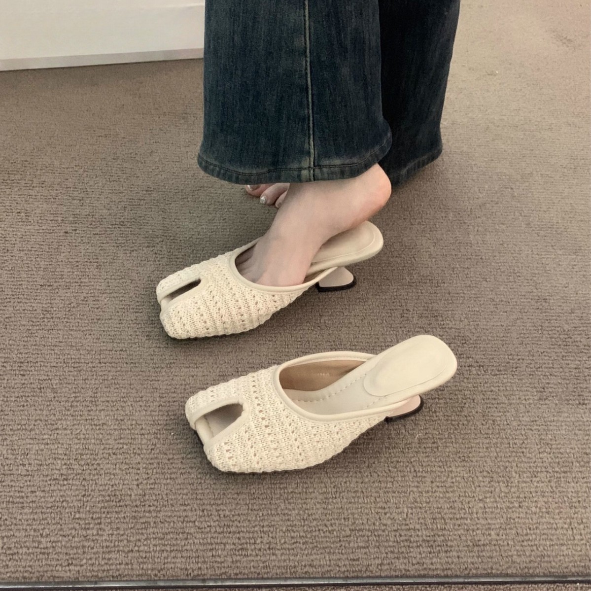 French mesh breathable half-slippers for women in summer wear with skirt sandals pointed toe low-heeled sandals