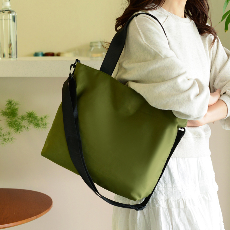 Large capacity cloth bag nylon solid color casual pleated fashionable and versatile one-shoulder class commuter crossbody bag