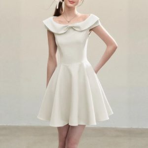 White linen embroidered vest dress for women in spring and summer shoulder-cut design waist-hugging sleeveless short skirt