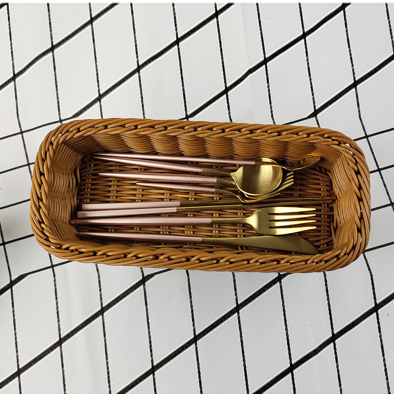 Plastic imitation rattan square chopstick basket Japanese-style Western-style knife and fork basket household chopstick cage drain kitchen tableware storage box