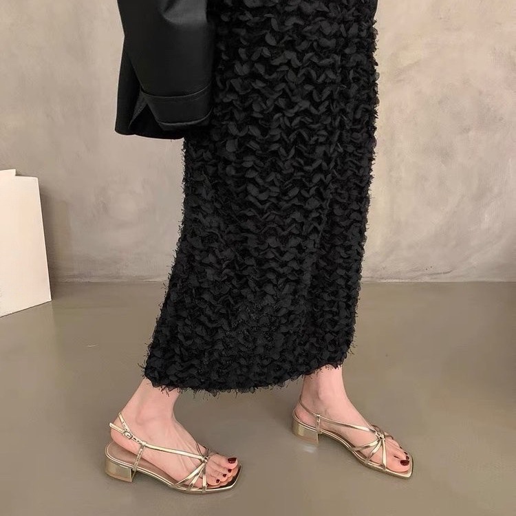 French gentle sandals for women in summer fairy style with skirt temperament rhinestones strap thick heel sandals