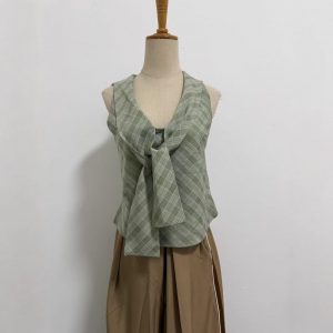 Yuzhi Green checkered temperament tie-fitting vest waistband to make you look thinner summer high-end sleeveless top