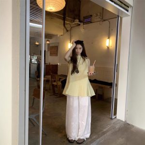 Real shot of summer French retro simple white loose temperament niche sleeveless slit shirt women’s top