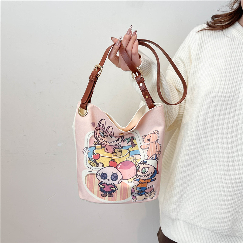 Cartoon large-capacity canvas bag female college student commuting out shoulder bag crossbody bag trendy toy bag