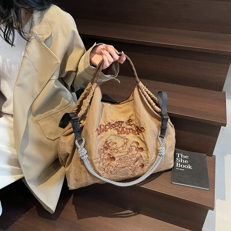 Casual literary canvas bag fashionable cartoon embroidered handbag large capacity Mickey shoulder bag women’s bag