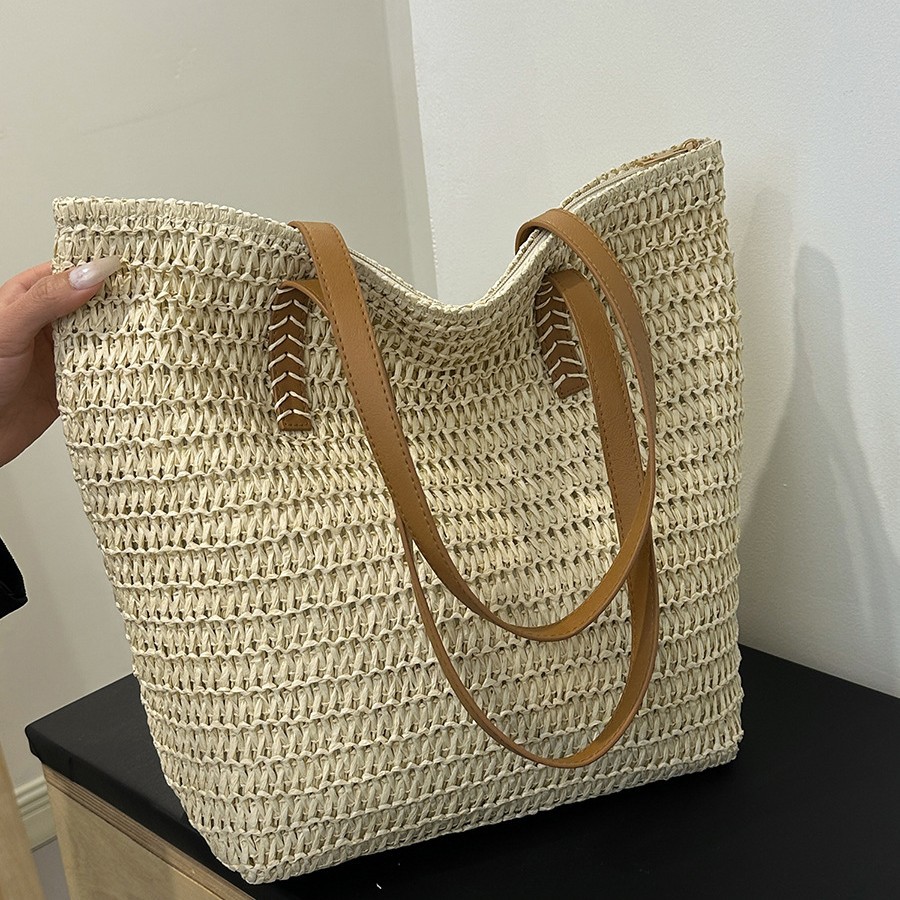 Straw woven bag fashionable shoulder bag niche design women’s shoulder bag large capacity personalized tote bag