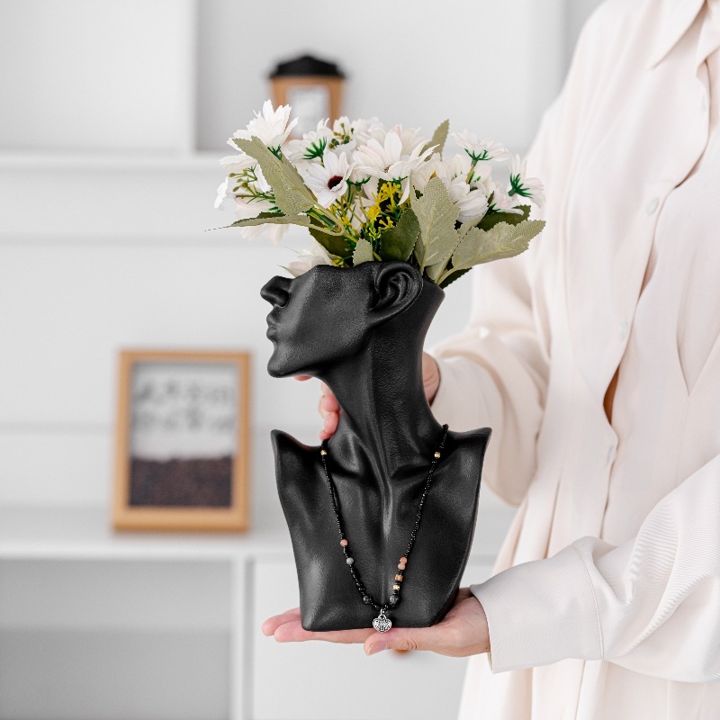 Damon ceramic vase black and white side face wear necklace jewelry display stand fashion flower decoration ornament