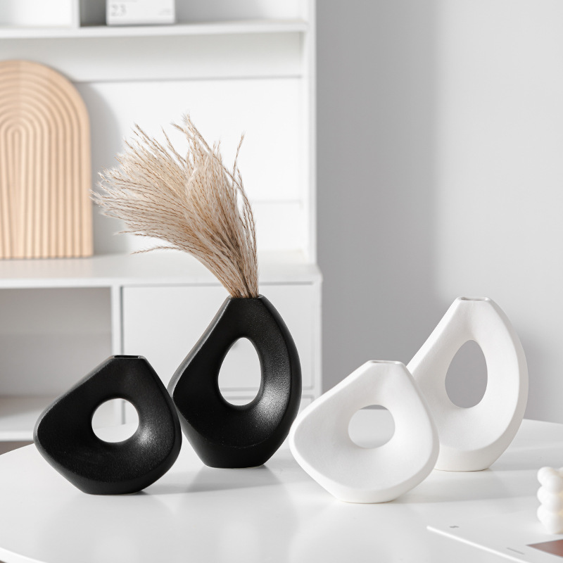 Modern simple circle ceramic vase light luxury high-end decorations home decorations
