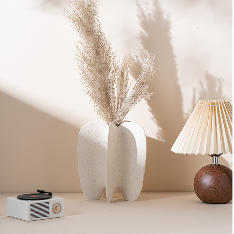 Scallop ceramic vase high-end bookshelf frosted texture art flower arrangement soft decoration home decoration