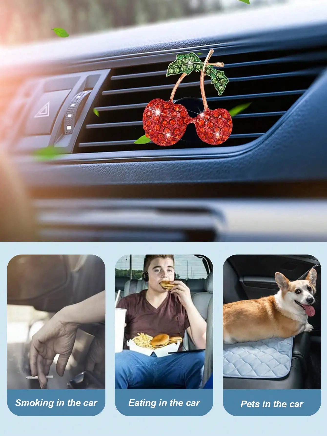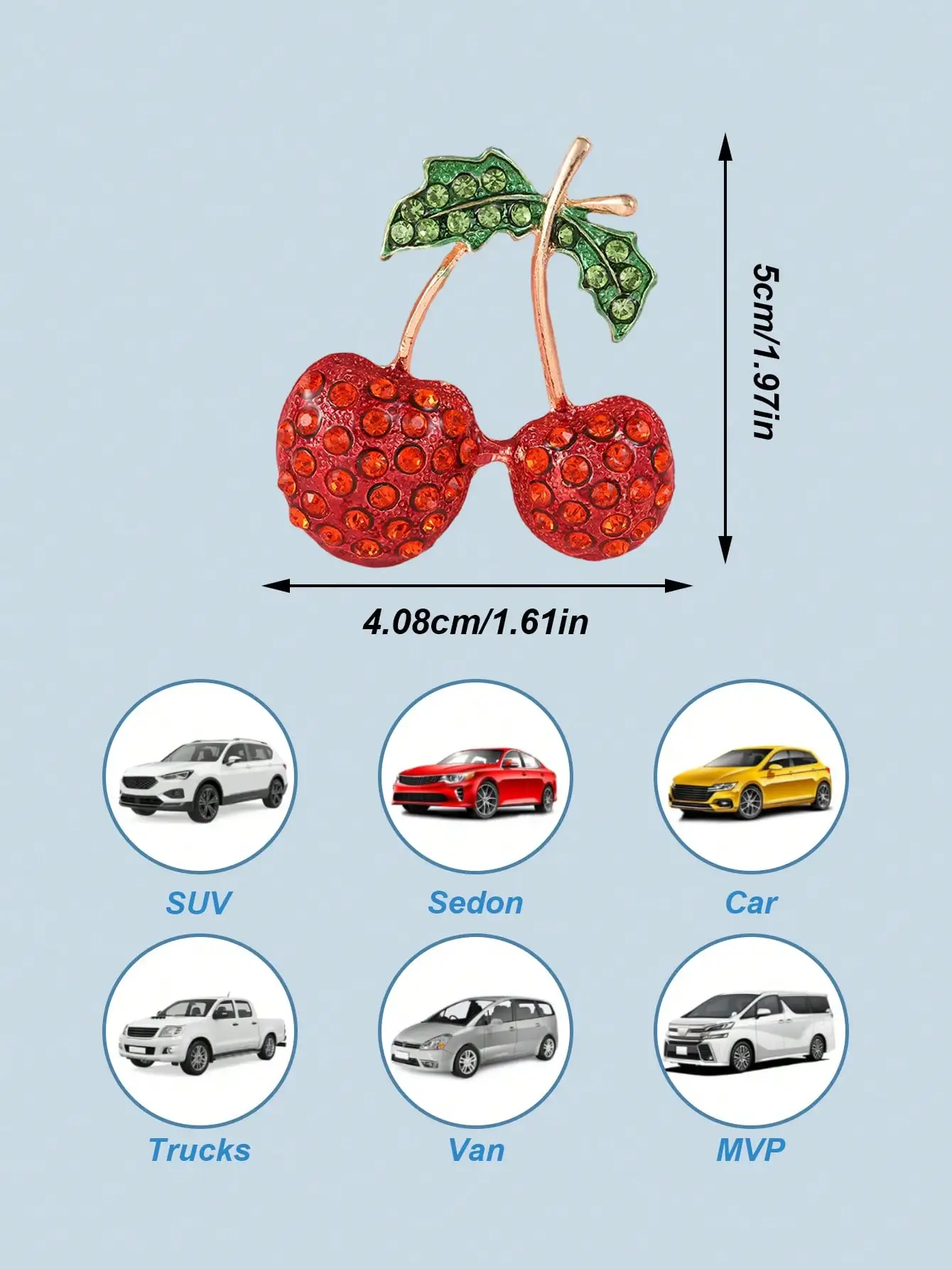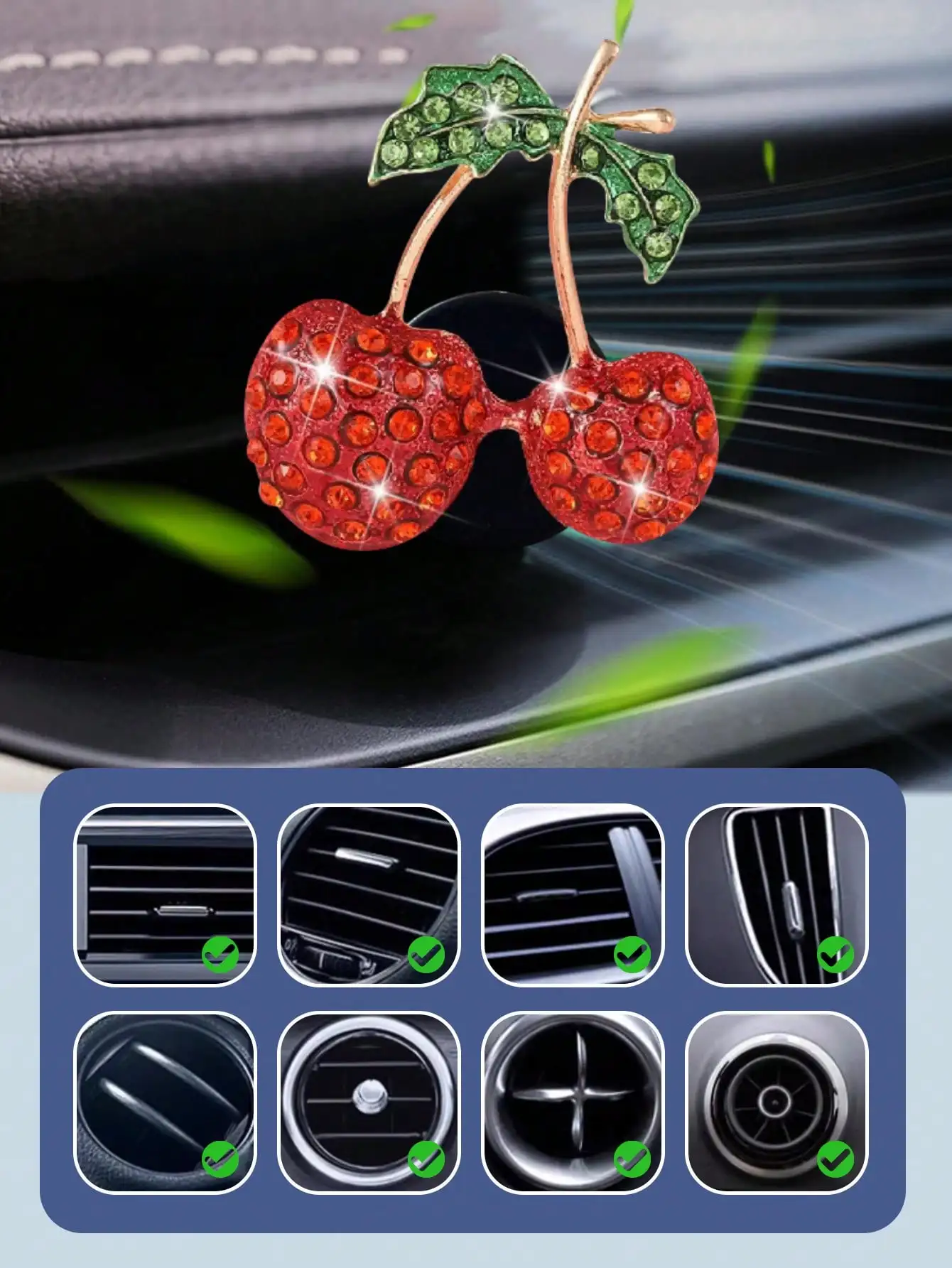 The Diamond Cherry Car Air Vent Fragrance Clip features a cute fruit-shaped design, adding a fun touch to your car’s interior.