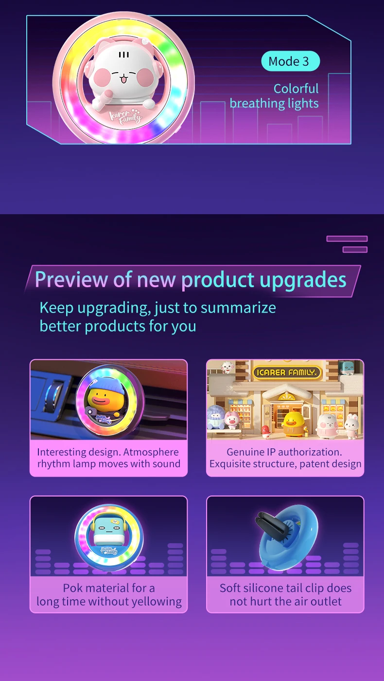 LED Cartoon Car Air Freshener Clip with Colorful Lights 4-Pack