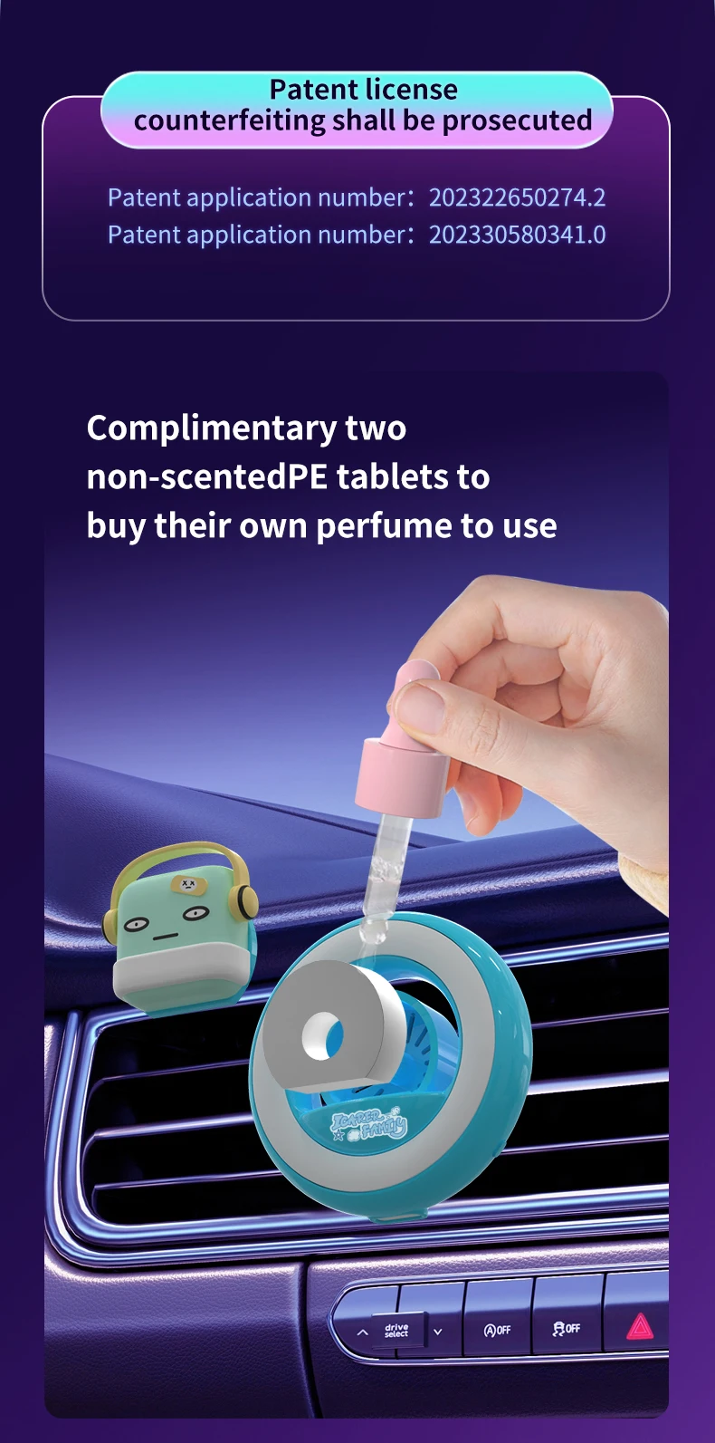 Cute design, a cute and attractive decoration for your car Multipleflavor fresh the air in the car,make the car full