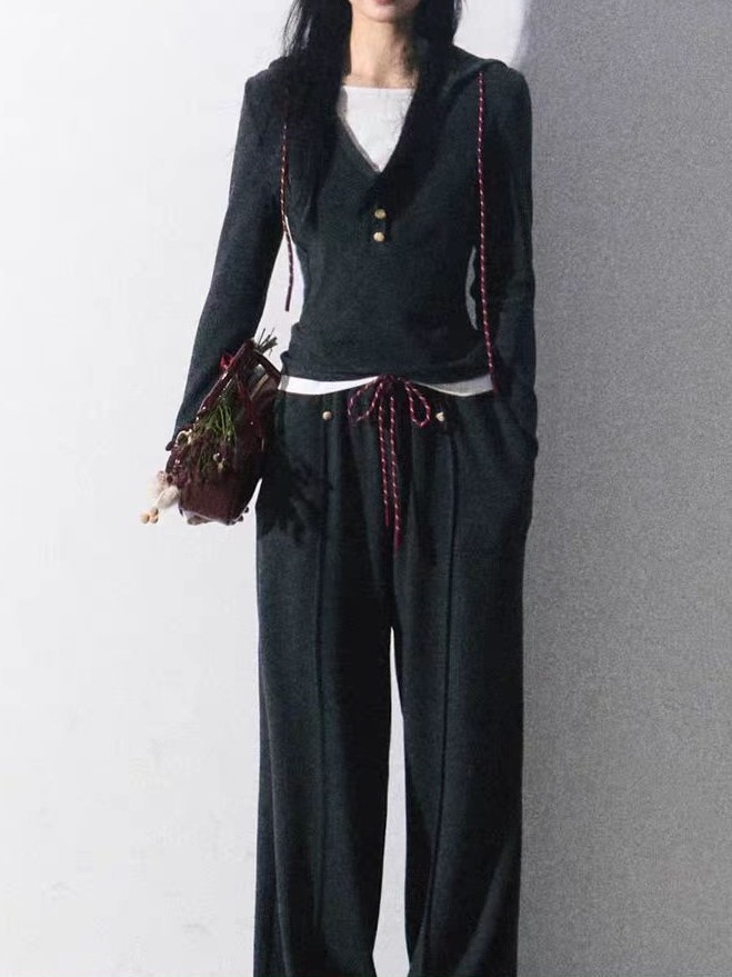 / “Aden’s Tears” fashionable sweater sports suit slimming and versatile base shirt and trousers