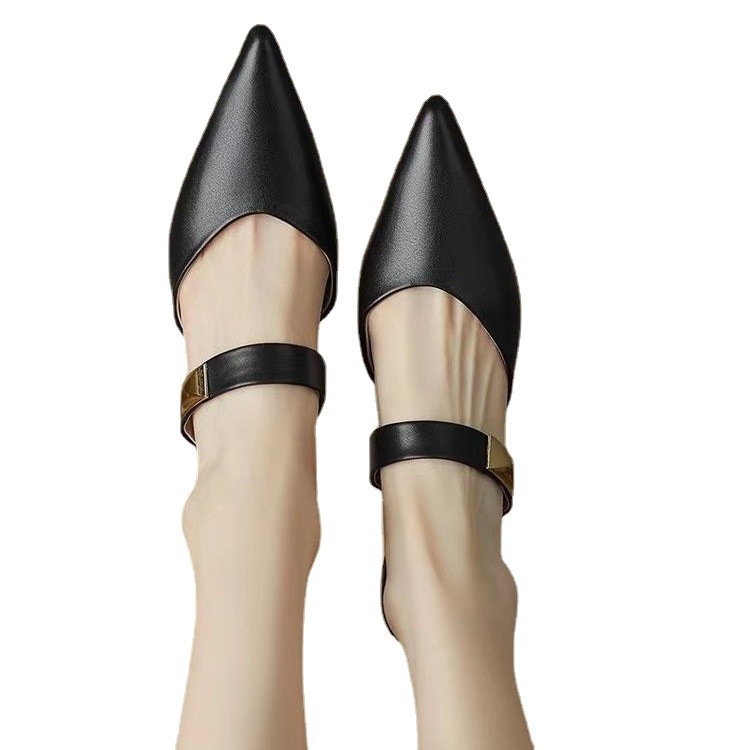 Baotou half slippers for women with thin heels wearing summer soft leather pointed mules high heels simple sandals