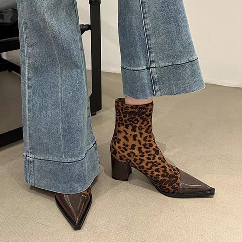 Brown plus velvet pointed toe boots for women’s short boots autumn and winter skirt with high-end simple and fashionable short boots