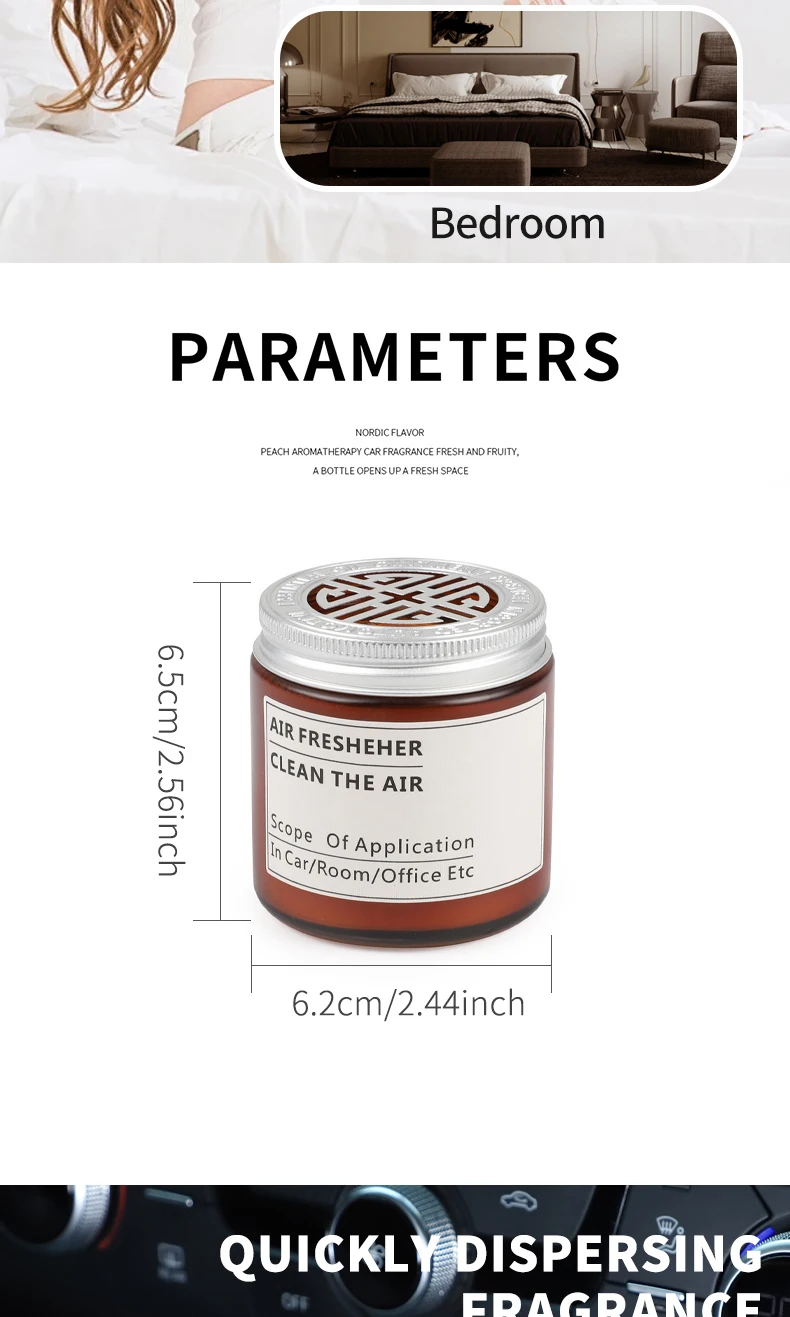 1.Aromatic Diffuser: Quickly diffuses fragrance in your car with a simple twist, making the air fragrant and pleasant. Releases fresh aroma that lasts for hours.