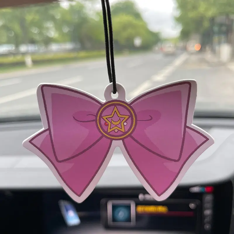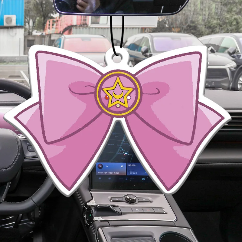 Pink Bow Car Air Freshener with Star Design, Aromatic Hanging Decor for Vehicles