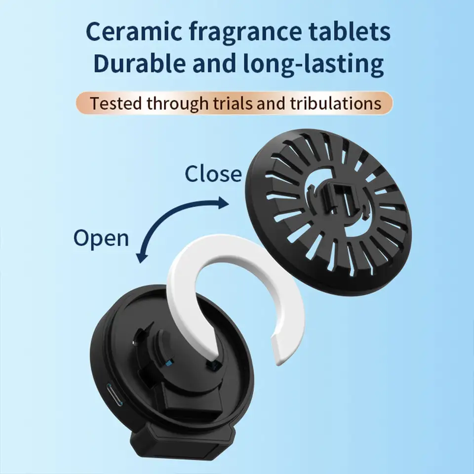 Double Ring Rotating Auto Fragrance Diffuser Portable Kinetic Molecular Heaters for Car Living Rooms Bathrooms Features: 1. Efficient Heating Solution: