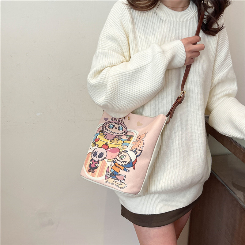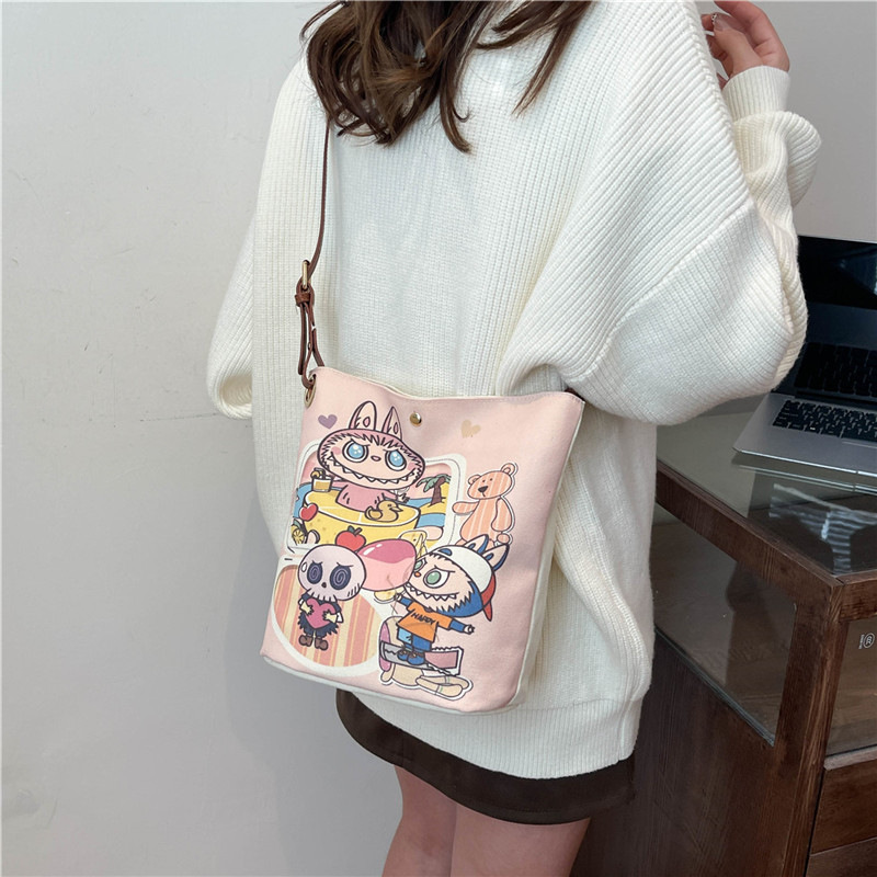 Cartoon large-capacity canvas bag female college student commuting out shoulder bag crossbody bag trendy toy bag