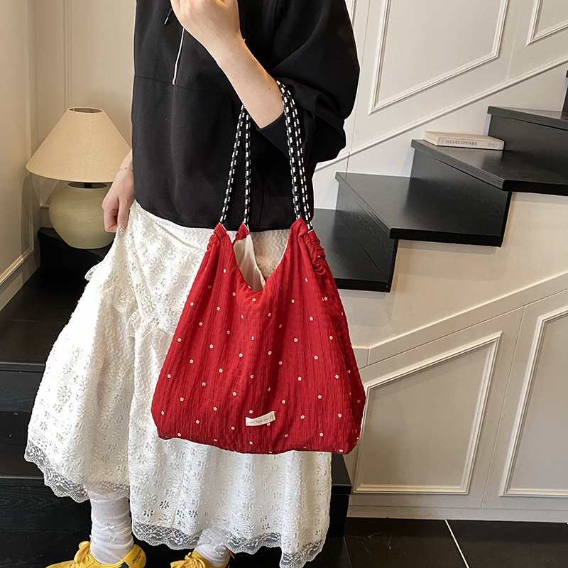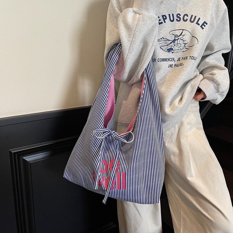 Casual commuting large bag for women double-sided denim single-shoulder underarm tote bag large capacity plaid bag