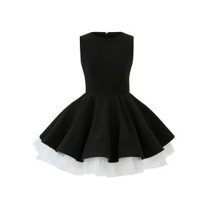 /Contrast color mesh splicing sleeveless French Hepburn dress with temperament waist-hugging fluffy skirt ballet skirt