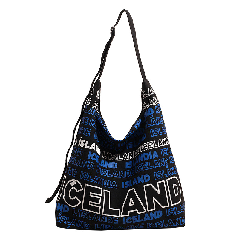 Diliba Iceland One-shoulder Canvas Bag for Teenagers Large Capacity Spring and Summer Simple Commuter Letter Tote Bag