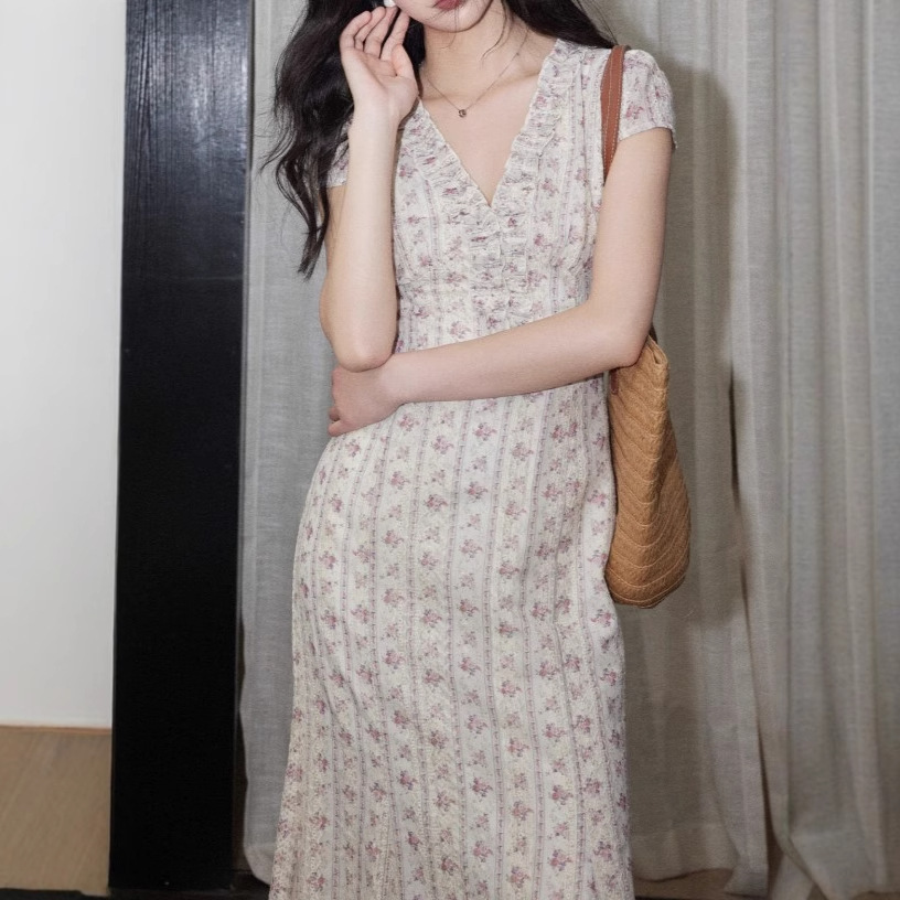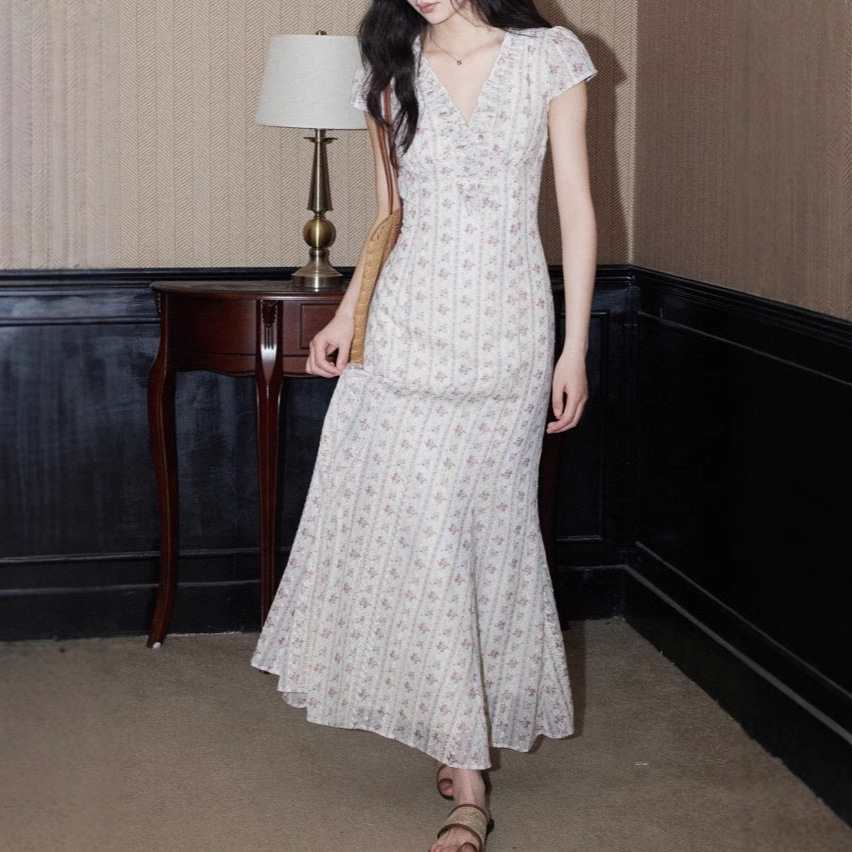 Eryang Design [Lezhi] Retro neck embroidered floral dress with female temperament high-end slim French long skirt