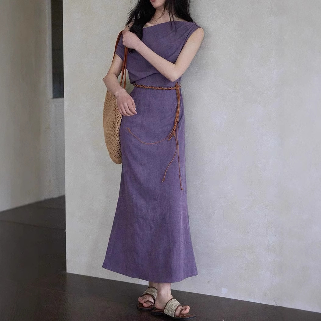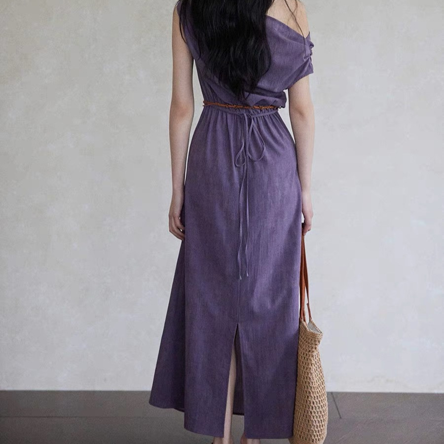 Eryang Design Weiyang New Chinese Style Slanted Neck Dress Female Temperature Purple Design Waist-Close Long Skirt