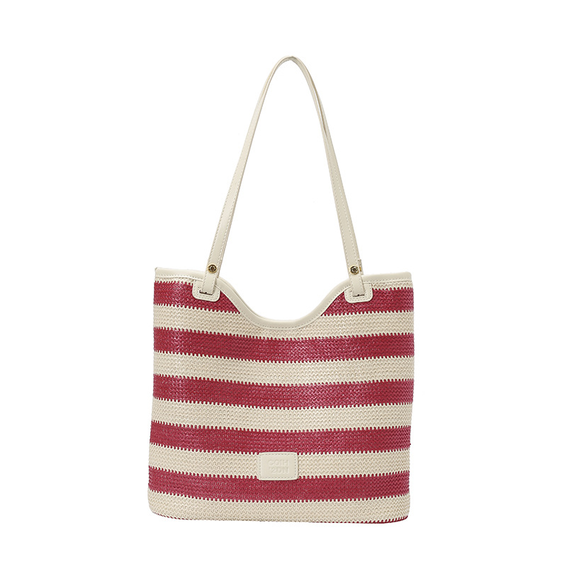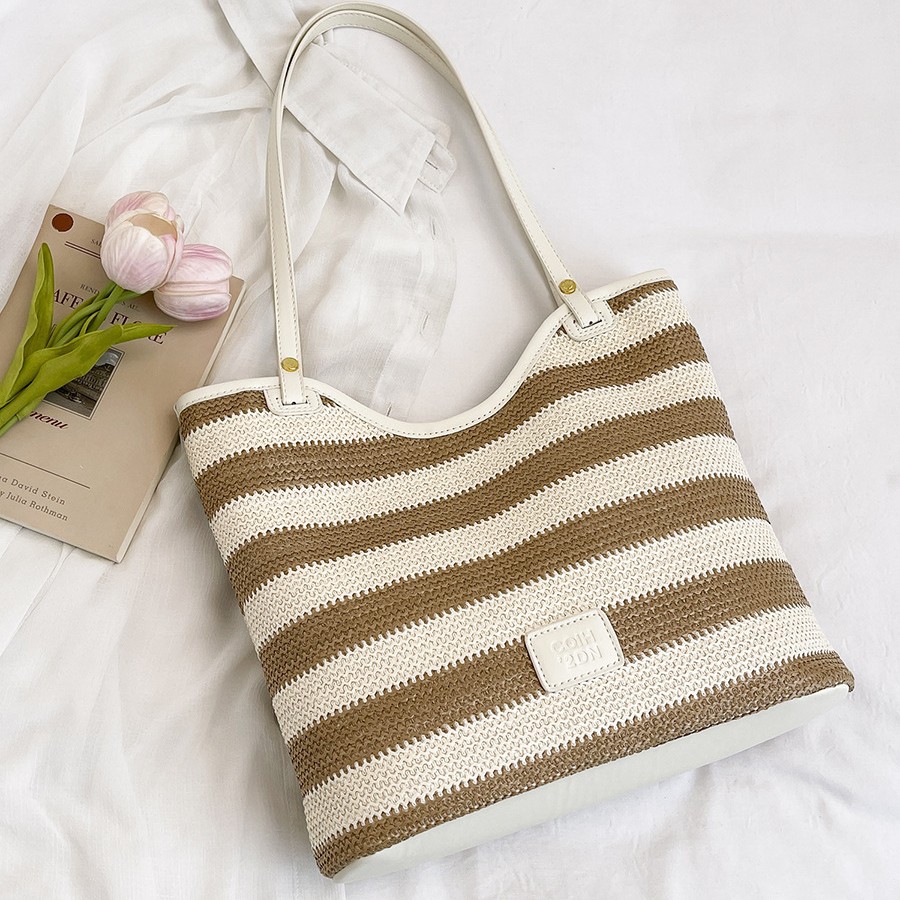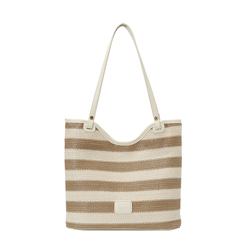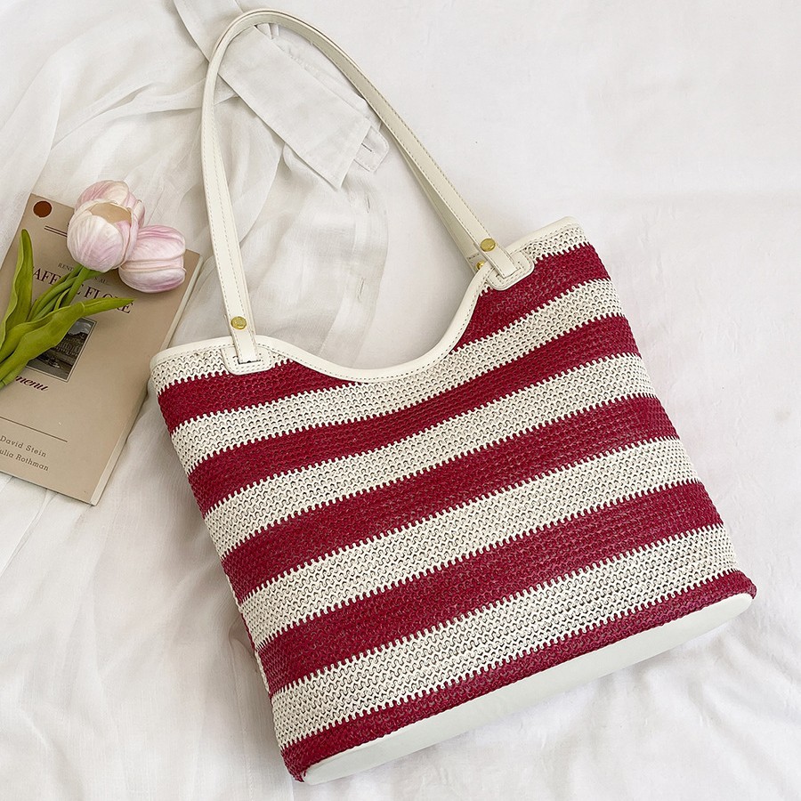 Fashionable large capacity tote bag for women simple casual shoulder bag striped braided handbag shopping bag