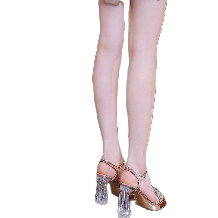 French skirt with crystal thick heel sandals for women in summer waterproofing platform with rhinestone high heels