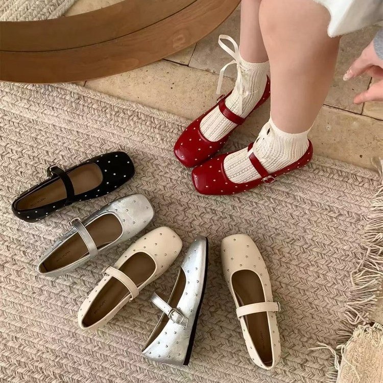 French square toe shallow mouth single shoes trendy soft leather one-liner Mary Jane shoes ballet single shoes women