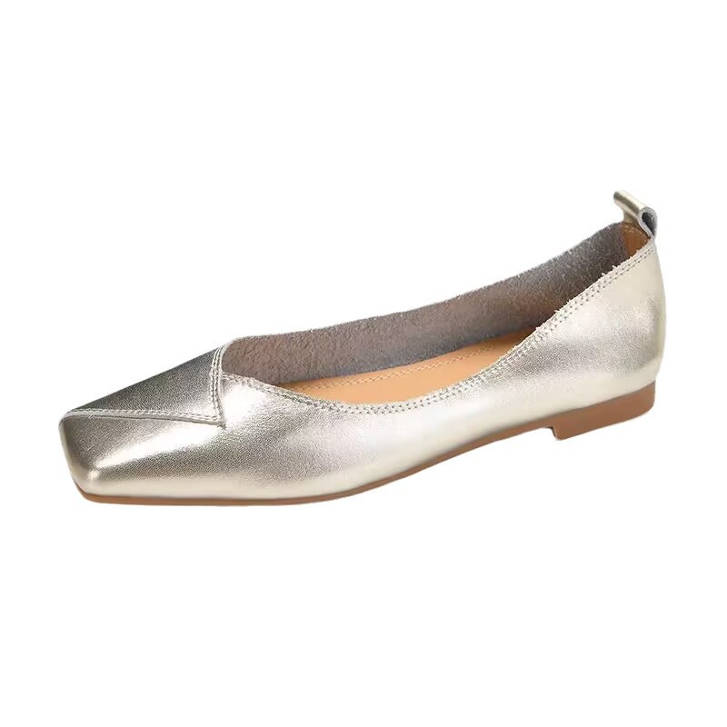 French temperament gold silver simple gentle grandma shoes square toe shallow mouth flat ballet shoes single shoes for women spring and summer