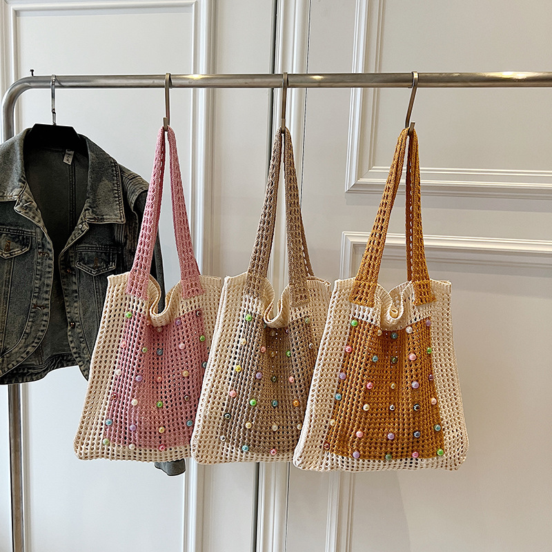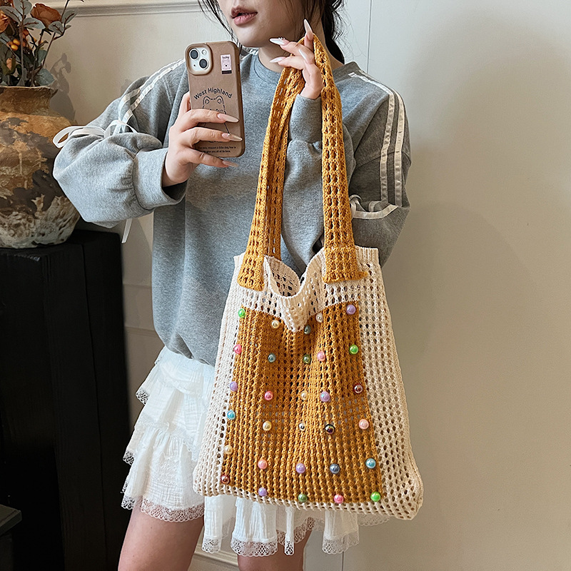 Handbag for women knitted yarn bucket bag version versatile hand-carrying casual tote bag lunch bag