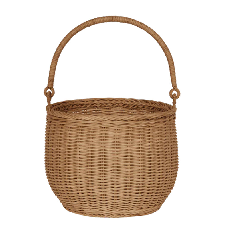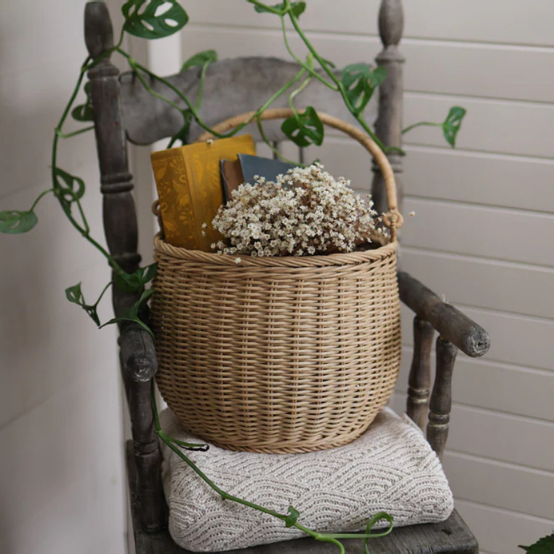 Handheld storage imitation rattan woven basket outdoor picnic fruit basket flower arrangement handheld basket children’s flower picking basket
