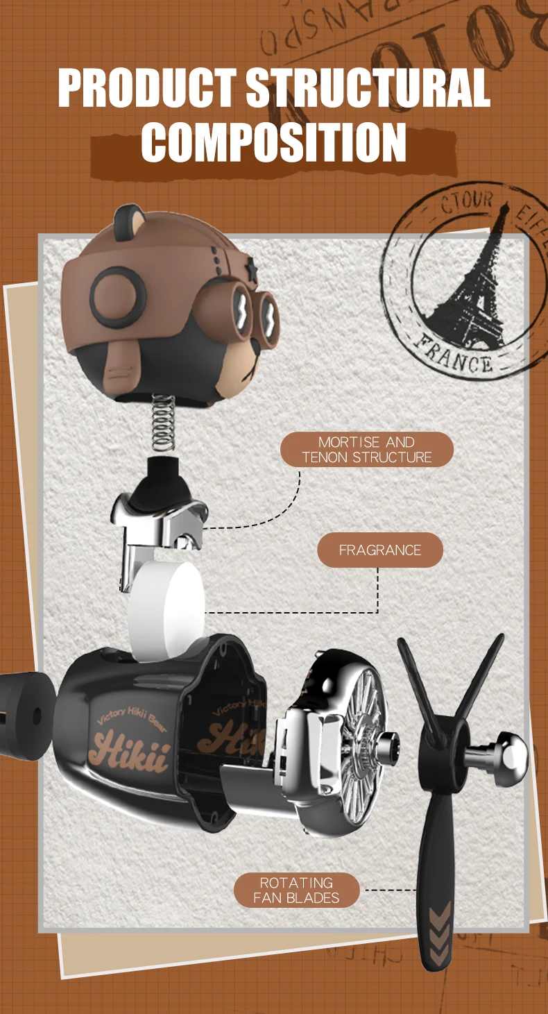 Features:1. Attractive motor design: Enhance your car decor and attract attention with this car freshener diffuser, styled like a vintage