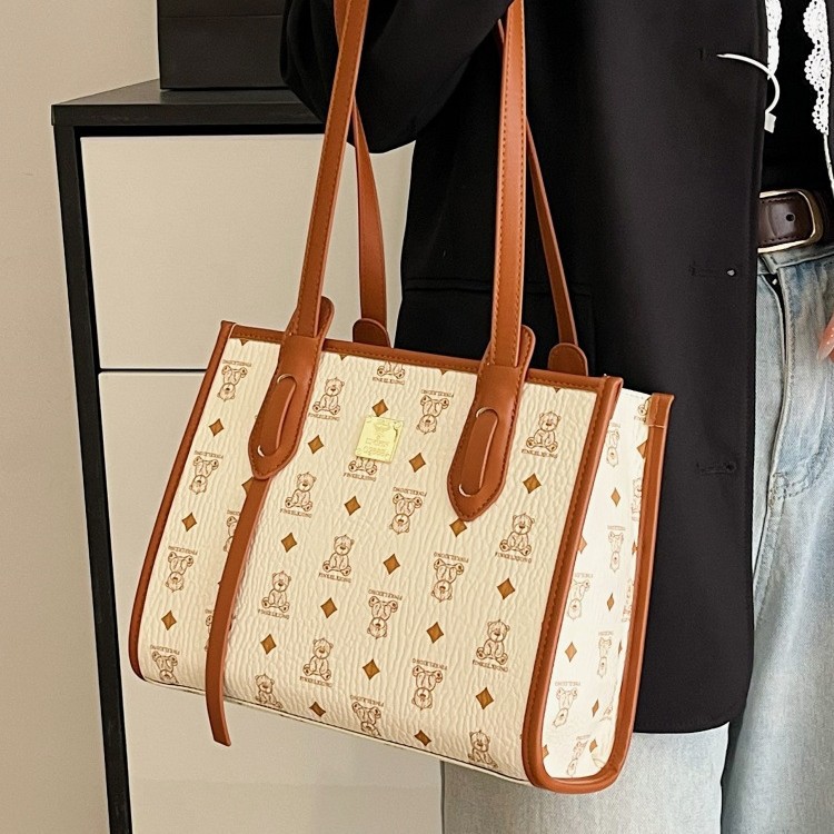 High-end retro shoulder bag large capacity commuting tote bag women’s printed niche versatile underarm bag