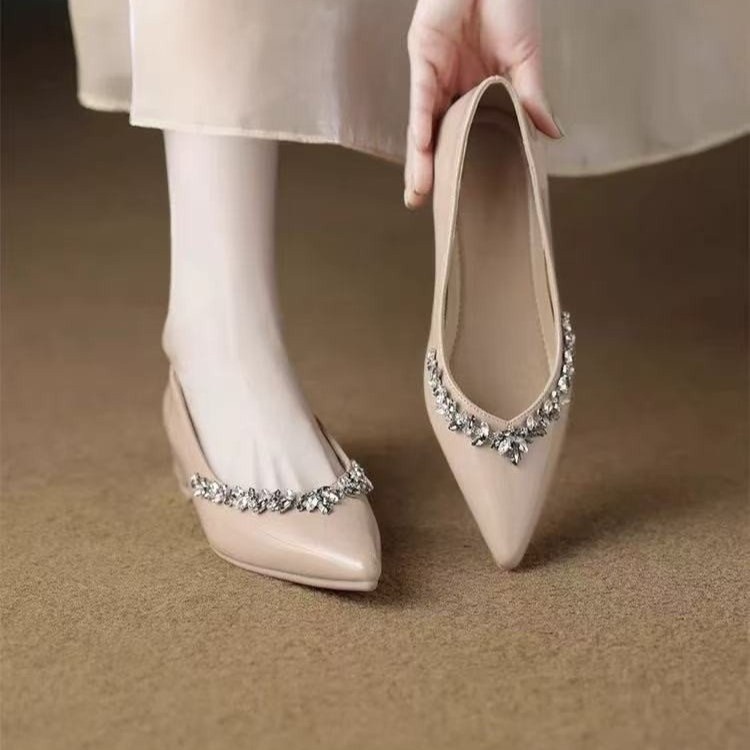 High-high-end pointed toe shallow mouth beautiful small heels single shoes for women in spring and summer rhinestone temperament evening shoes with skirt