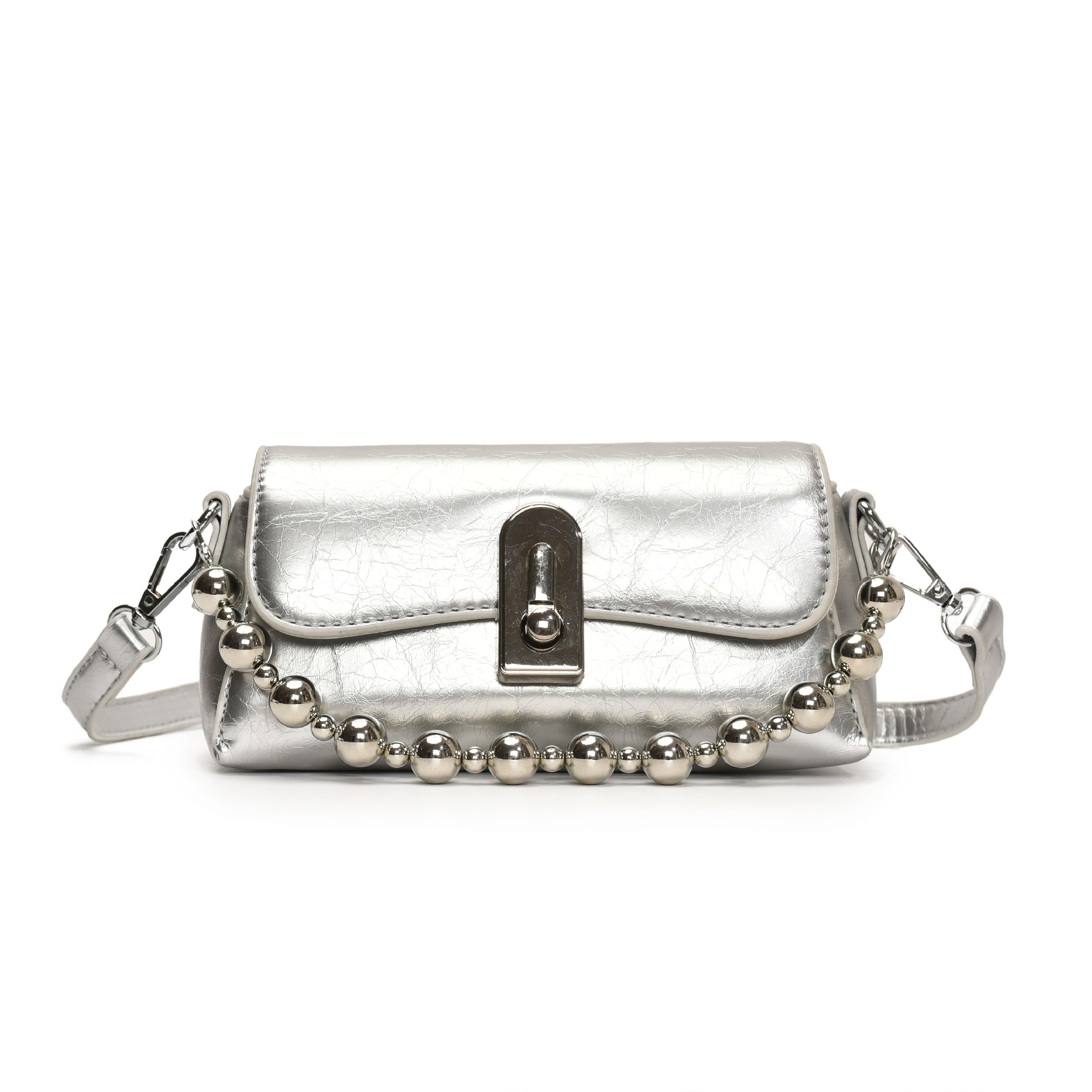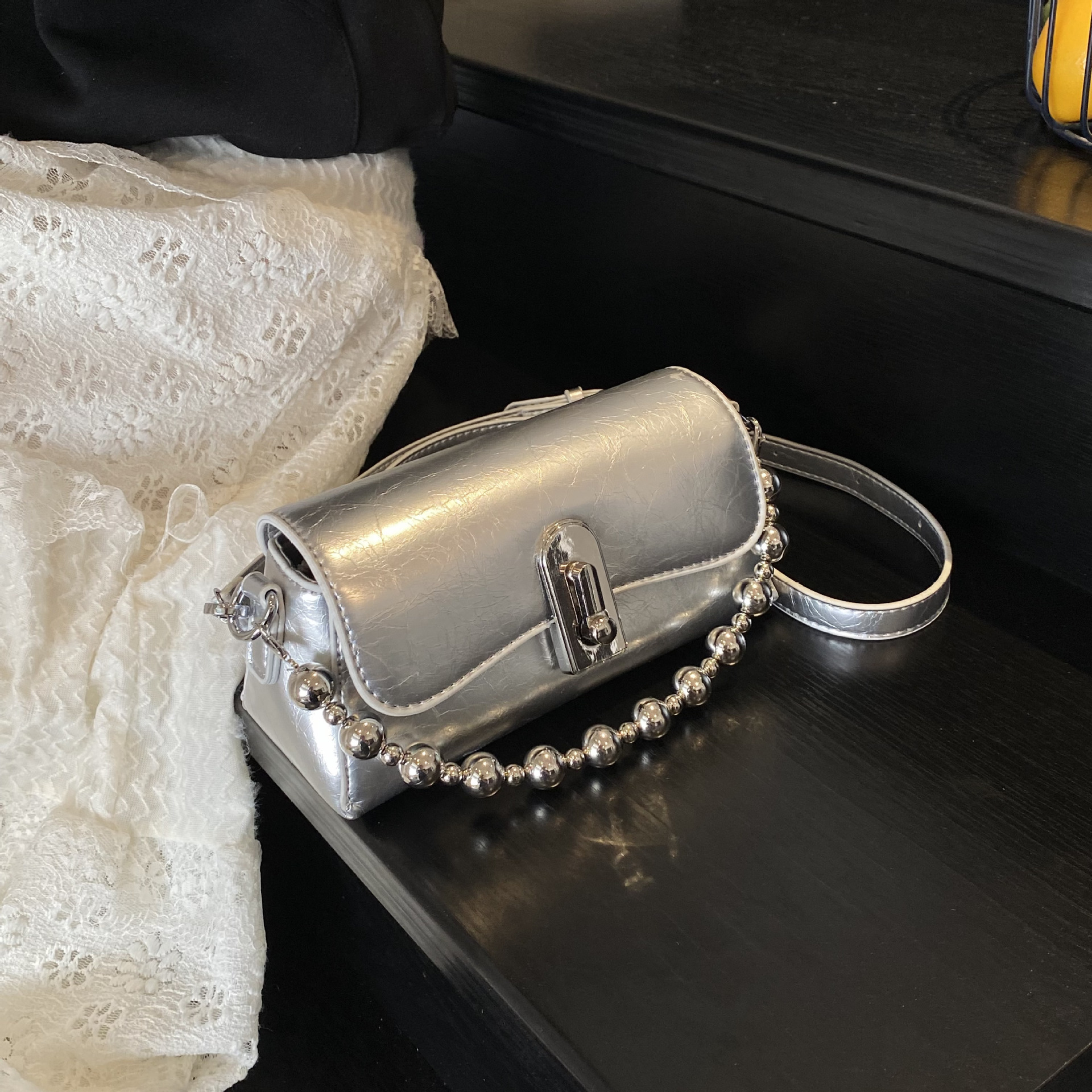 High-value bag chain fashionable French high-end small square bag popular silver one-shoulder crossbody bag