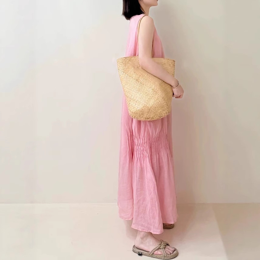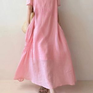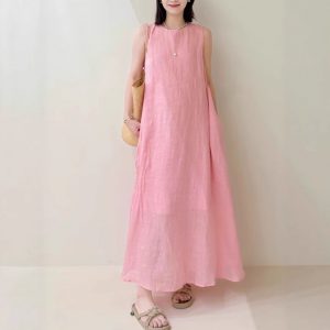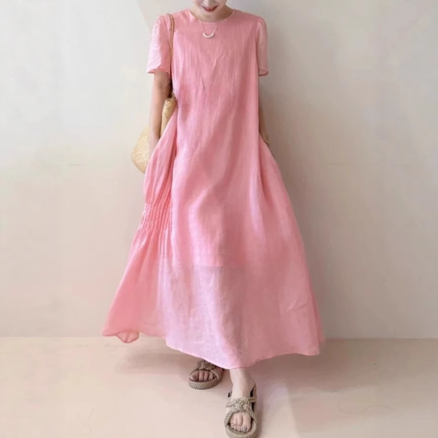 Homemade peach blossom skirt Summer temperament hides flesh and whites high-quality Korean numb loose dress