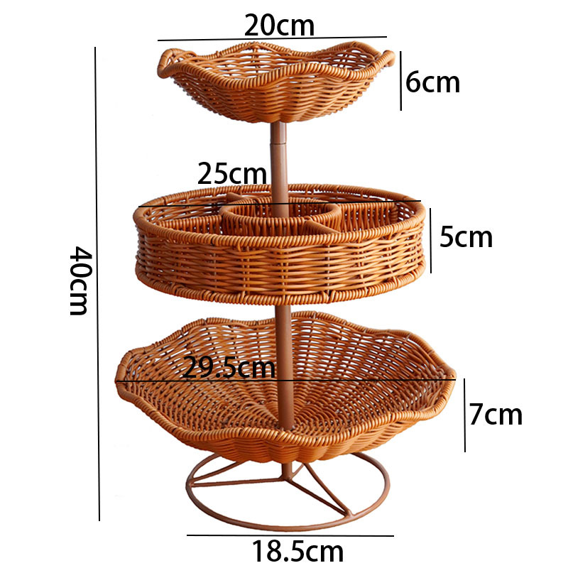 Imitation rattan multi-layer fruit basket living room coffee table dried fruit snack candy plating multi-function storage display stand