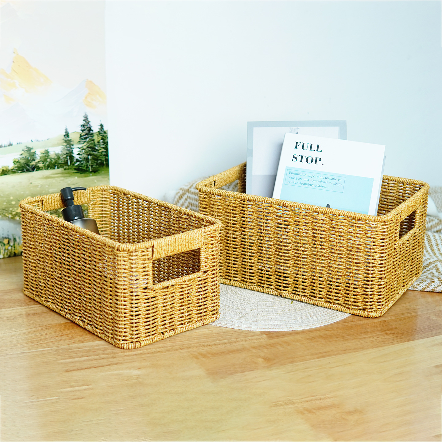 Imitation rattan storage basket living room drawer storage basket desktop toys snack storage basket storage basket storage basket storage basket