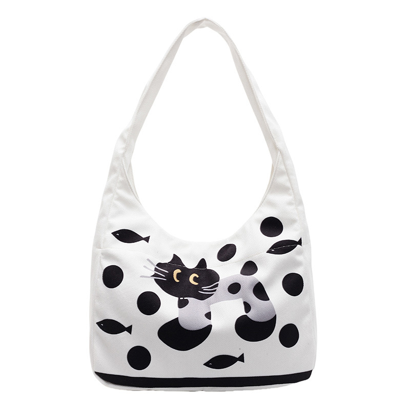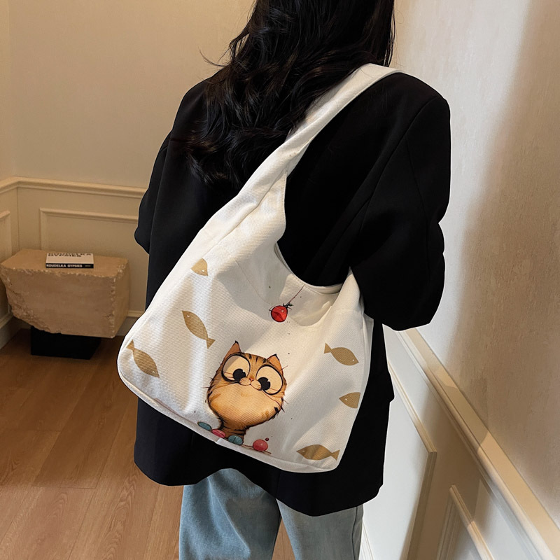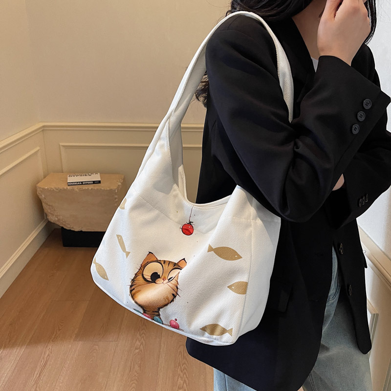 Kitty canvas bag fresh sweet shoulder bag fashionable portable large capacity commuting handbag for women