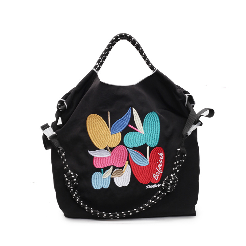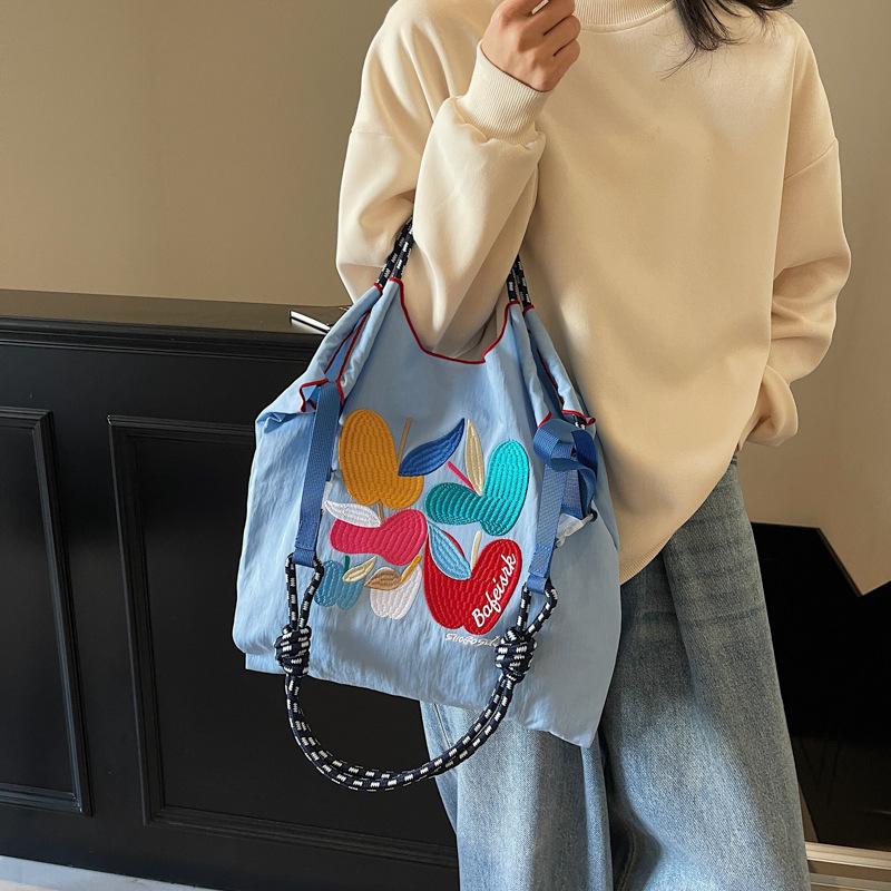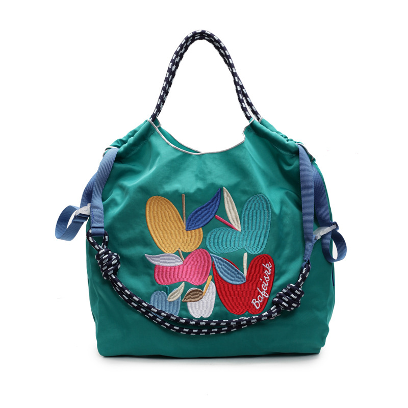 Literary and handmade nylon cloth shopping bag large capacity casual embroidered shoulder bag lightweight tote bag