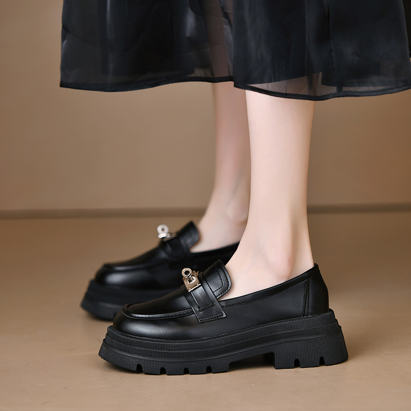 Locking British style small leather shoes for women in spring and summer single shoes thick sole height-enhancing simple casual shoes for women