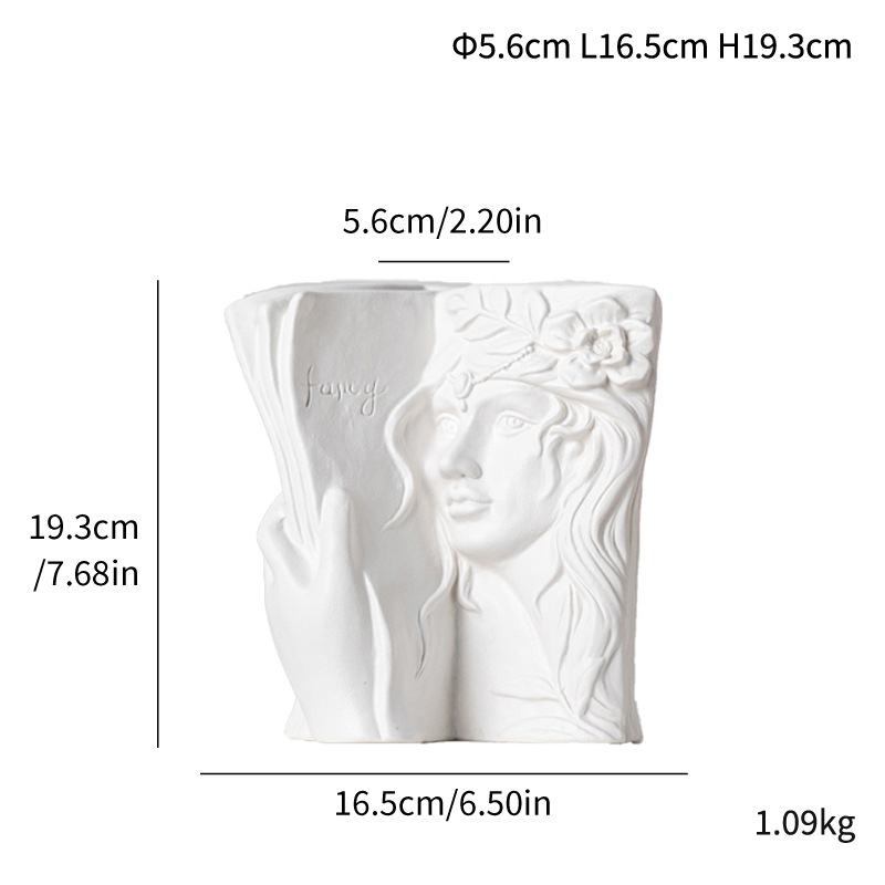 Modern and simple simple white Facebook ceramic vase light luxury ornament art flower insert