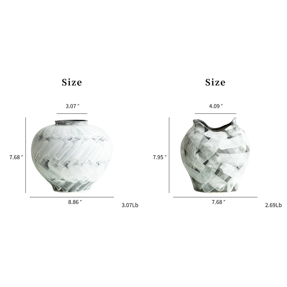Modern minimalist style ceramic watercolor ink white pattern vase light luxury high-end home decoration