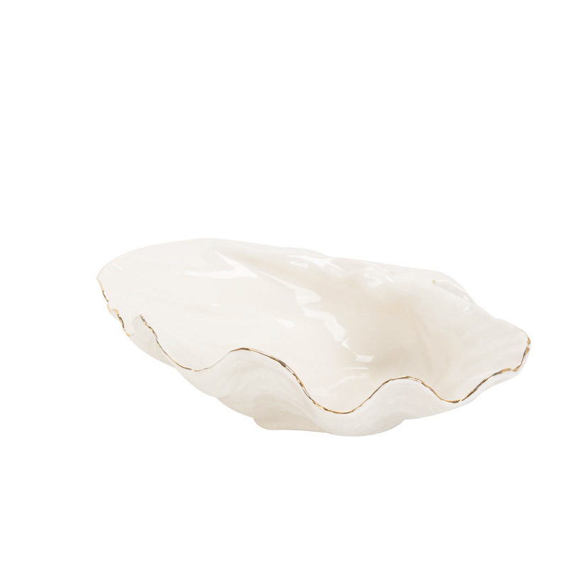 Modern simple gold-edged shell ceramic ornaments fruit candy family hospitality ceramic plate home decoration