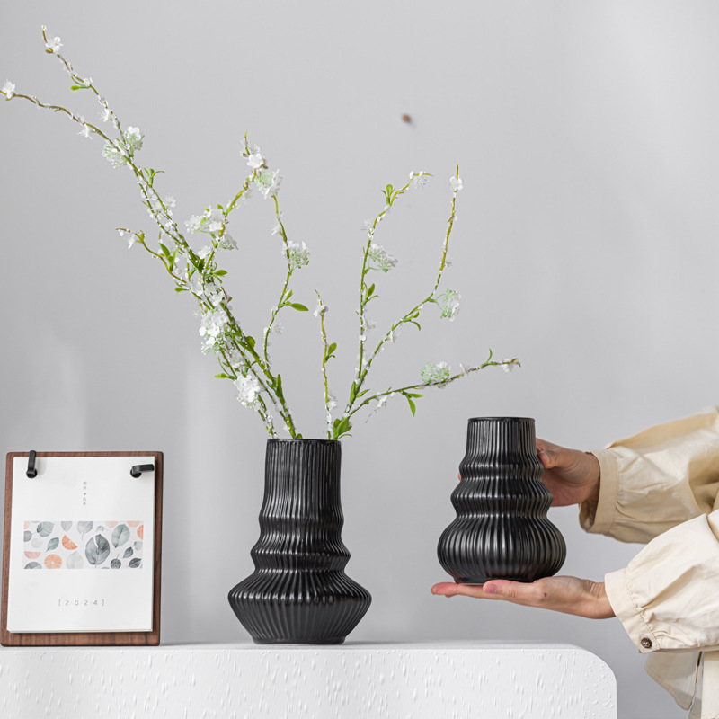 Modern simple style home decoration thread layered ceramic porcelain vase vertical pattern decorative gift
