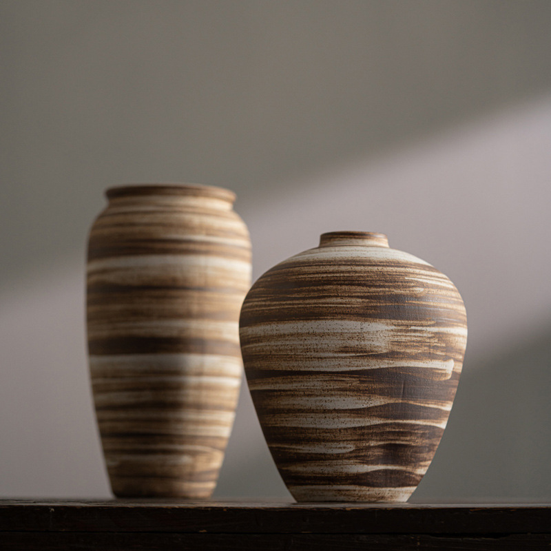 Modern simple Wasabi style stone pottery vase high-end flower arrangement light luxury home soft decoration ornaments