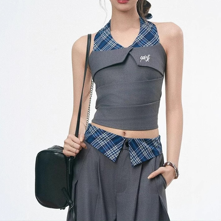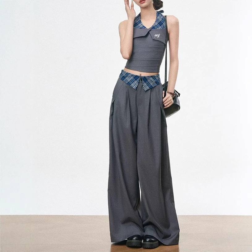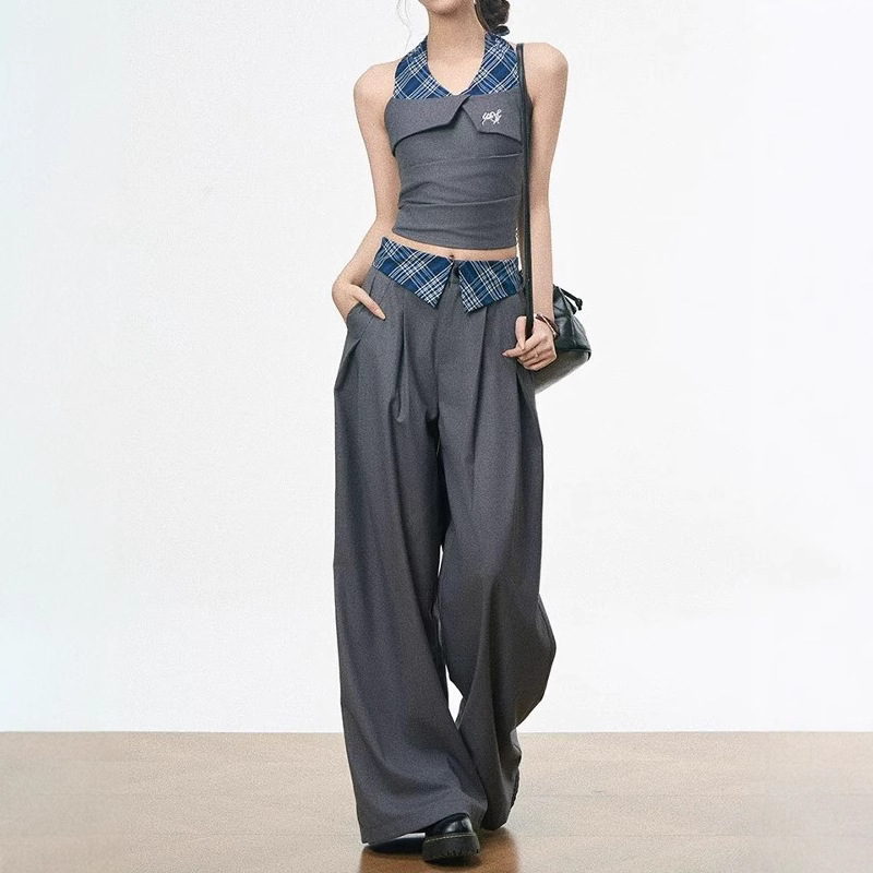 Month issue spliced halter neck vest for women in spring and summer commuting wide-leg pants